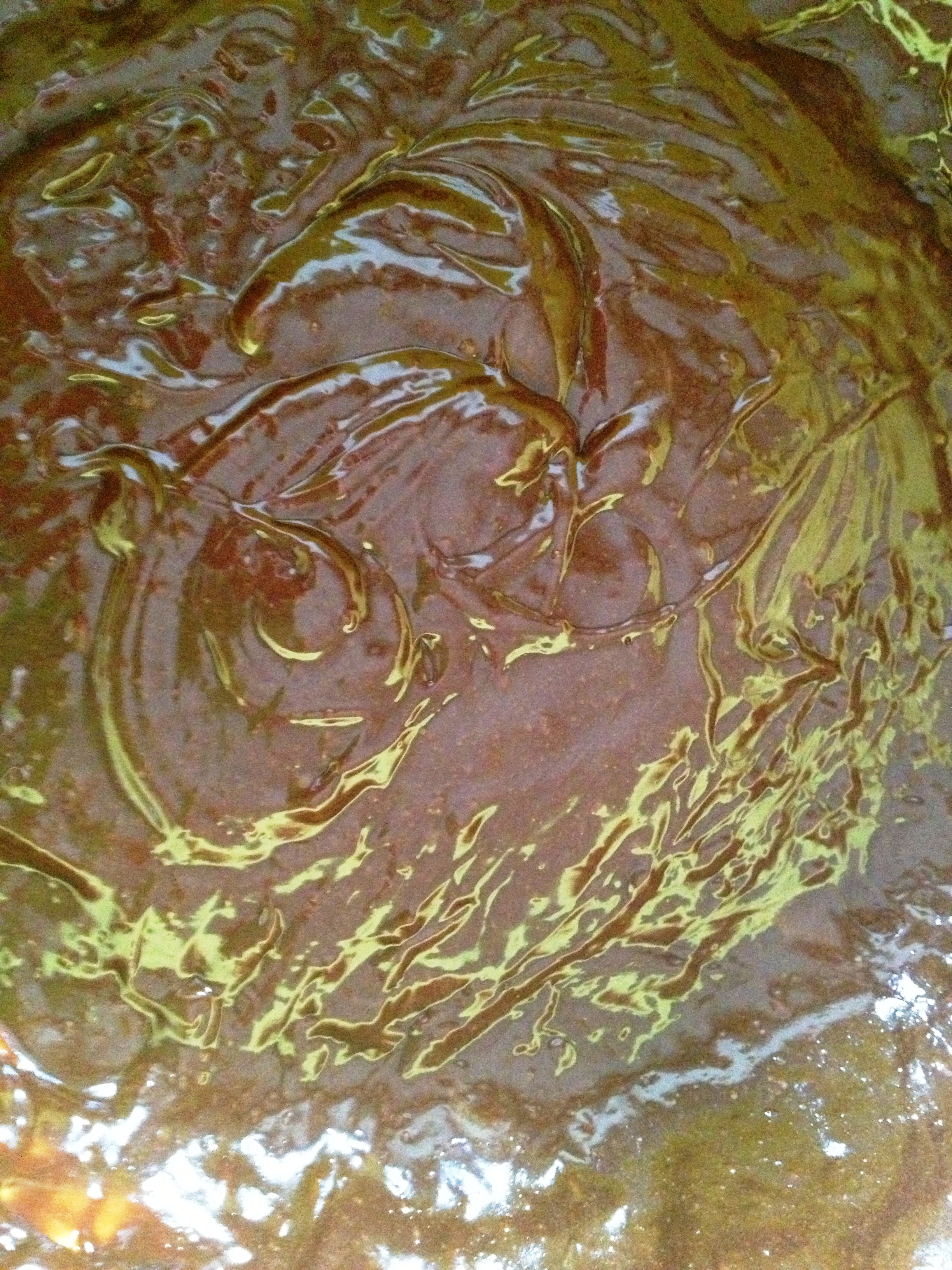 2. Melt the butter and 8 ounces of the chocolate chips in a double boiler. I just had a janky saucepan with an inch of simmering water and a metal bowl over it- whisking until it melted. Remove from heat and add the vanilla.