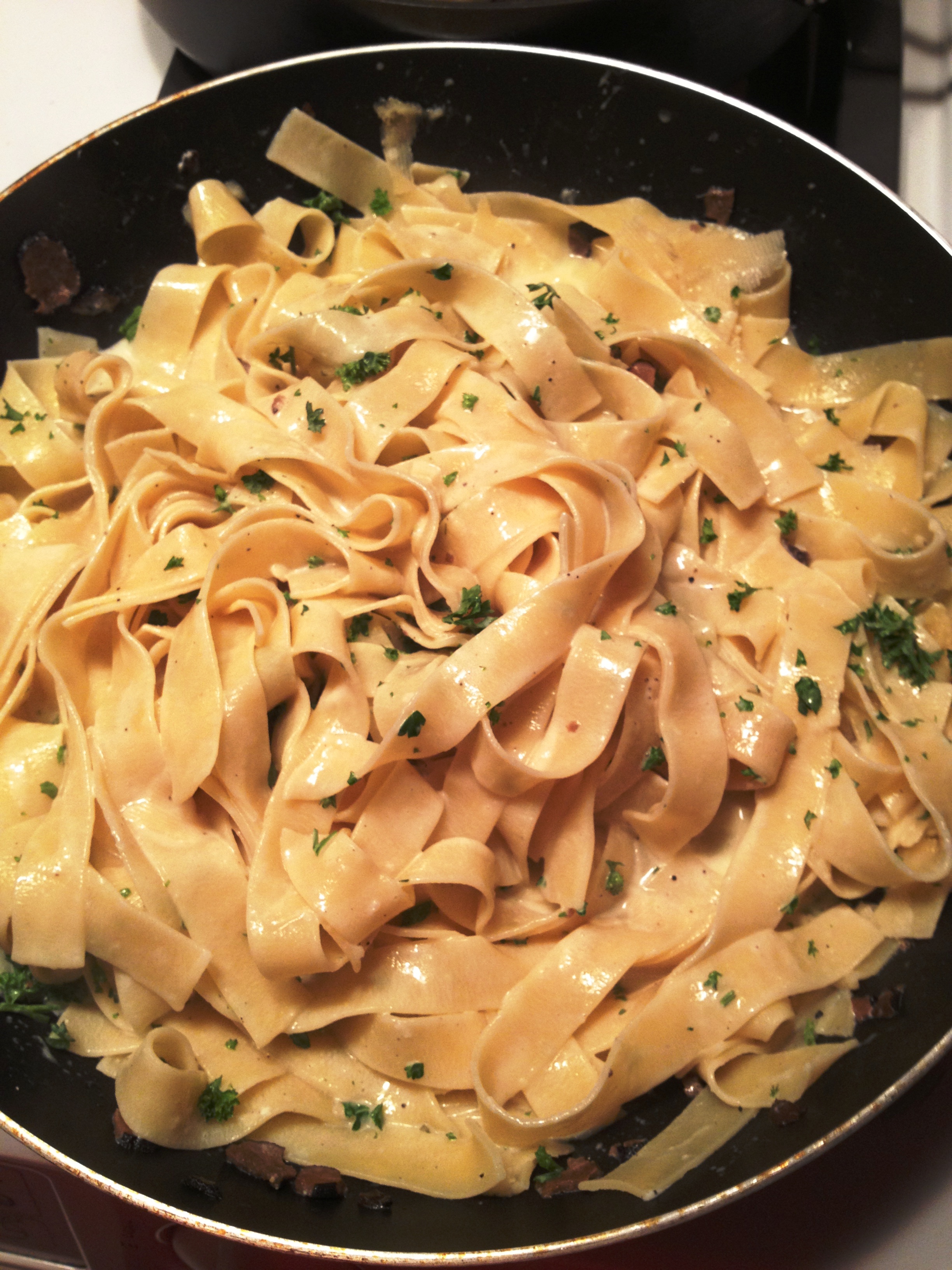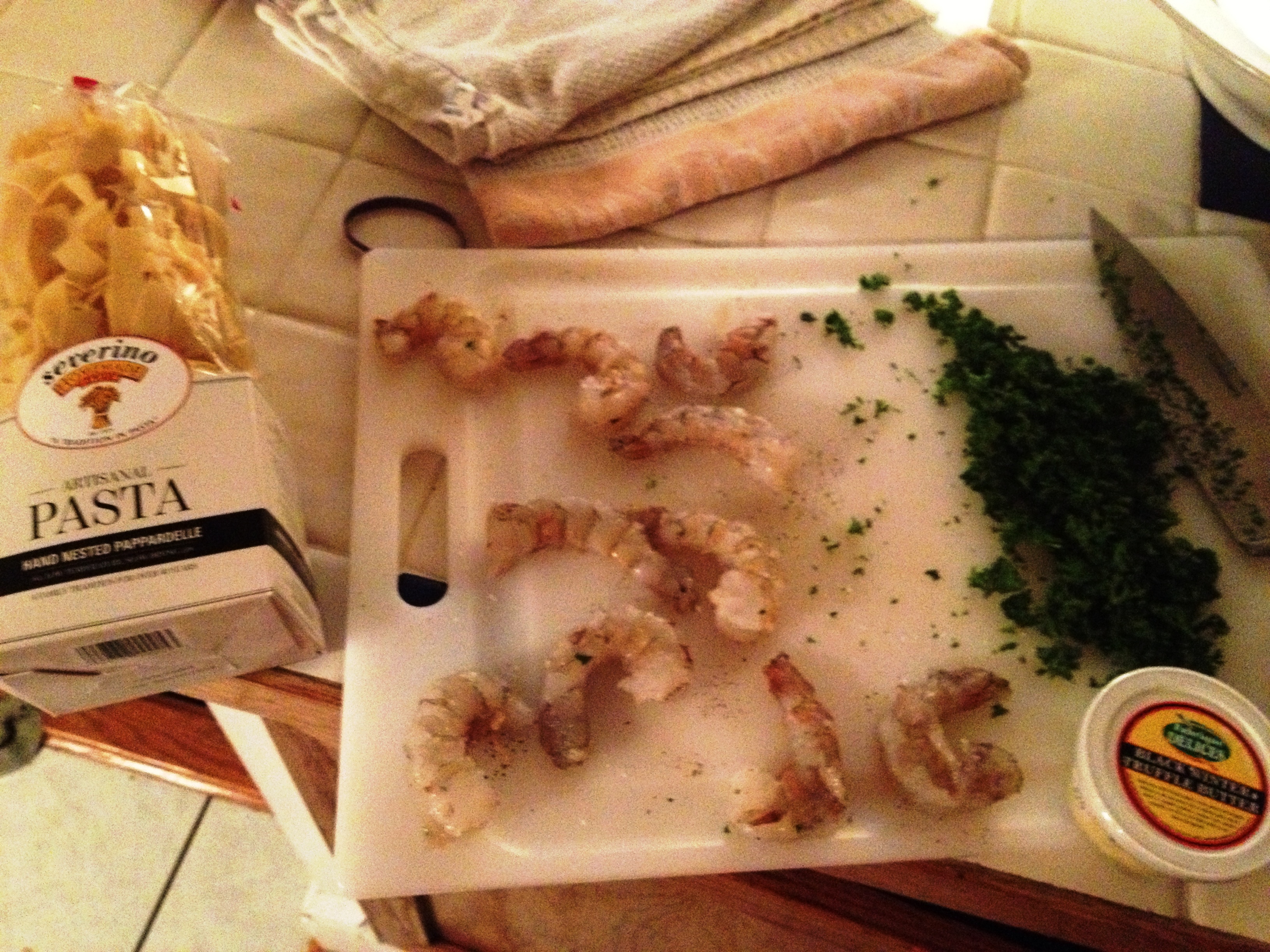 I know there is hype around truffles/truffled things and how awesome or overrated or expensive they can be. I know you have to be careful when buying truffle oil because most of the time it’s a big trick and there are barely any truffles. Not to say I am entirely against being tricked. I’ve definitely shelled out $$$ for things not remotely worth their price tags and I just can’t care. I can’t care about things I can’t care about. I CAN care about things that taste amazing and that is why I recently devoured some Pappardelle with Truffles and Sautéed Shrimp.