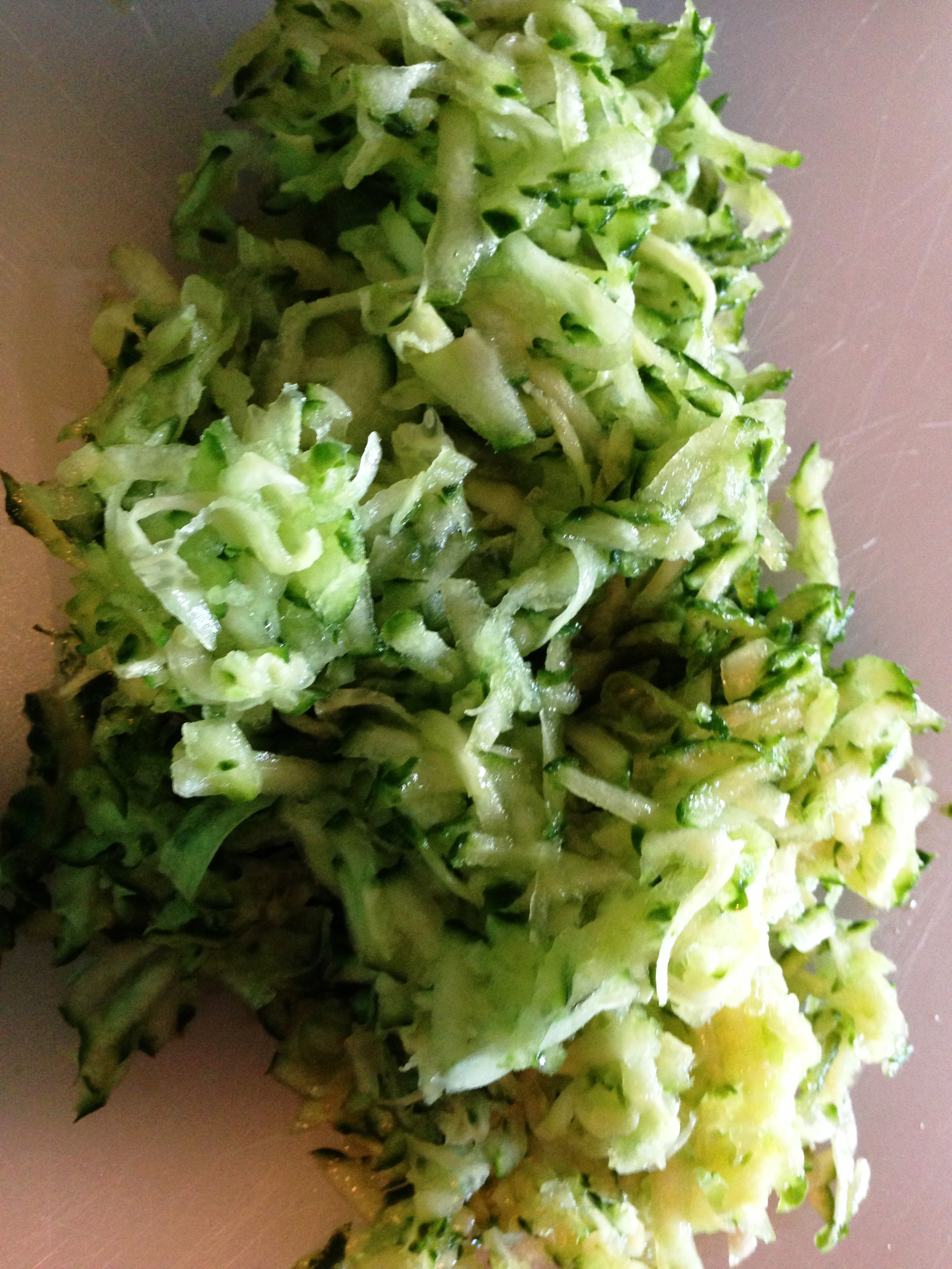Cut the cucumber in half lengthwise. Scrape out the seeds and throw them away. Grate the cuc on a cheese grater (on the large holes).