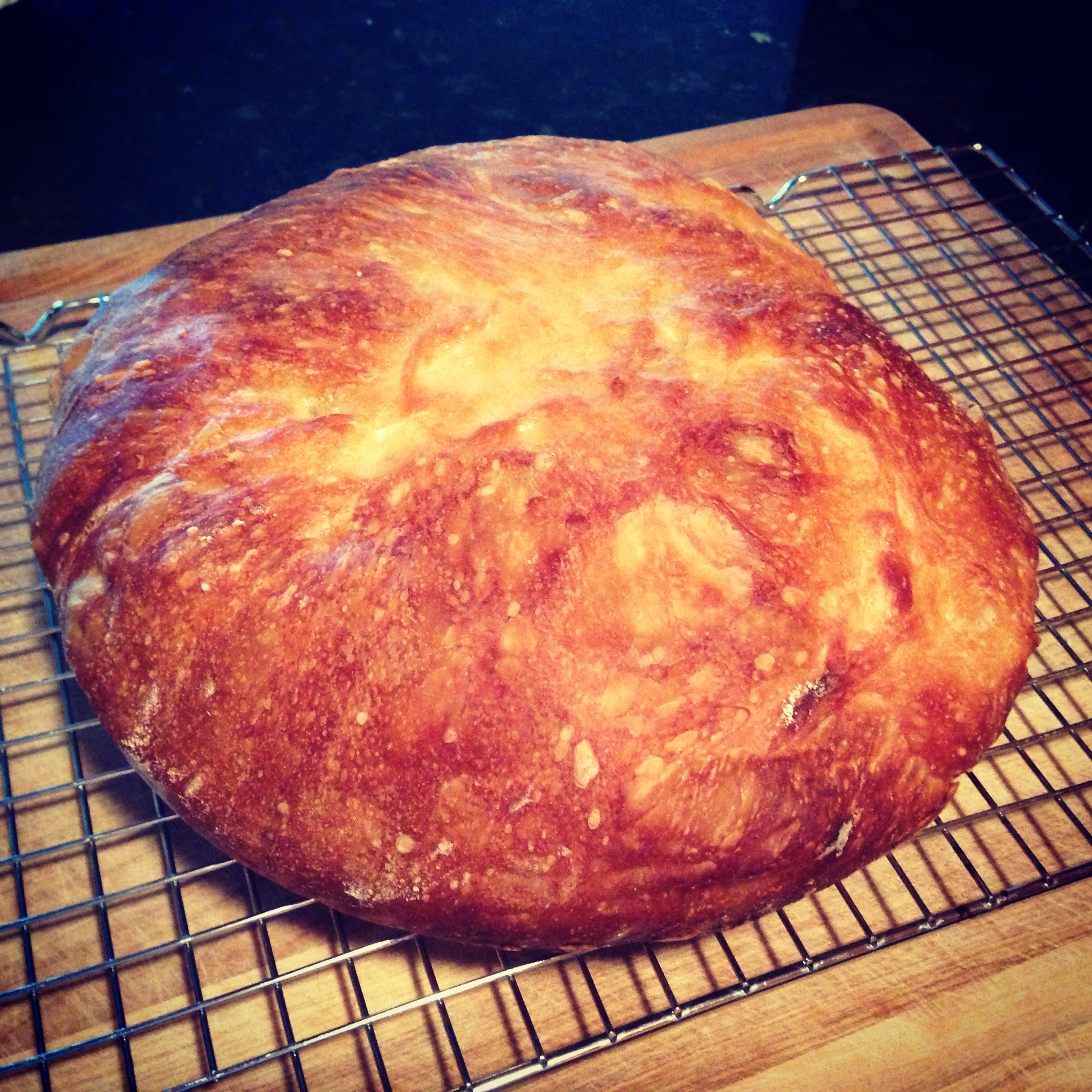 Okay take it out, let it cool and eat it. This is Alton Brown’s recipe for sourdough bread but you have to wait basically days for the dough to become “sour” and it’s perfectly consumable after 15 hours so go to town. You could probably let the dough hang for 48 hours though (who are the people in the world that can wait that long for homemade bread?).