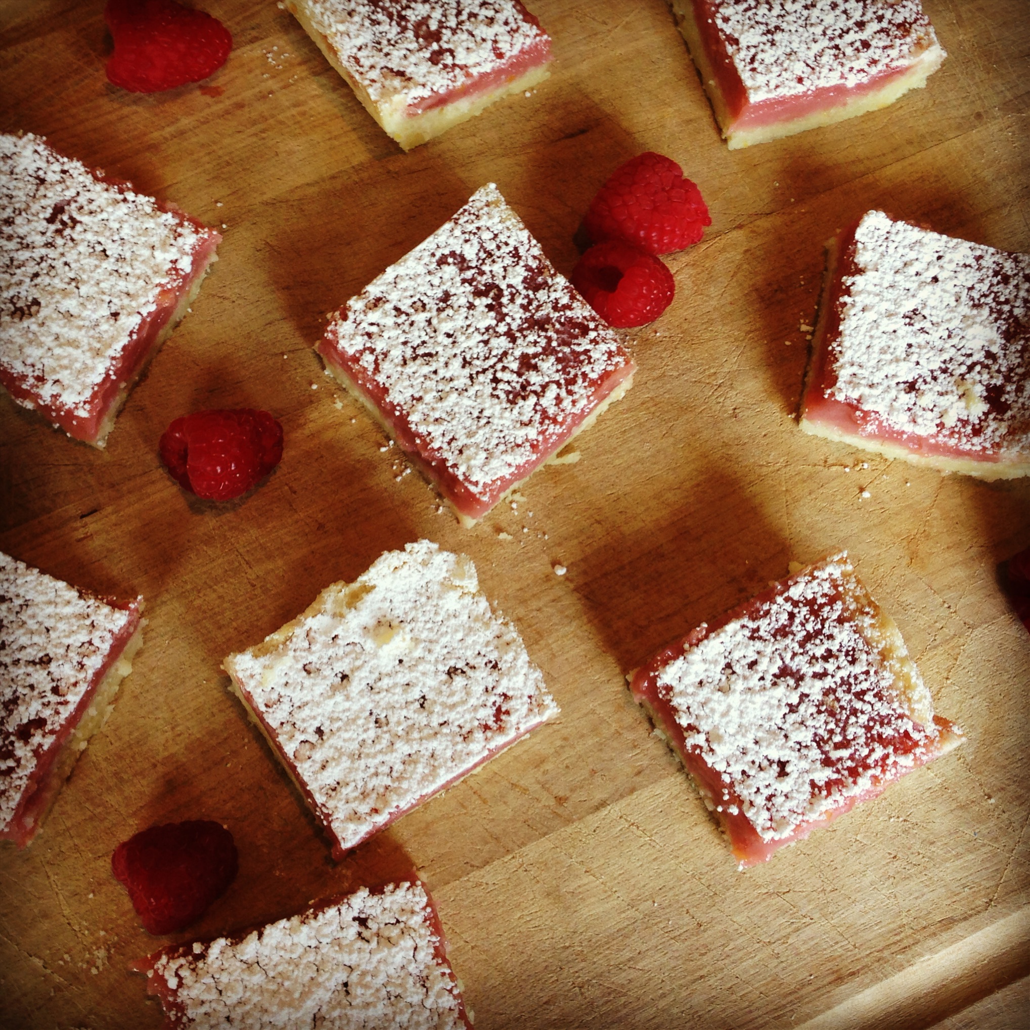 It is unclear to me why Starbucks has not hired me to manage their pastry case. They are all over the place with it. I travel a lot and Starbucks ultimately takes up a large part of my caloric intake. Now they have La Boulange providing their pastries. I went to La Boulange in San Francisco and was duped into thinking it was some cool local situation only to find out it was owned by Sbux. Realistically the greasy, dumb, pseudo hoity toity bs that is going on in the Sbux case now has nothing to do with the treats I had at La Boulange. These Lemon Bars with Fresh Raspberry Puree would one up anything they have to offer in that overpriced pile of wasted calories.