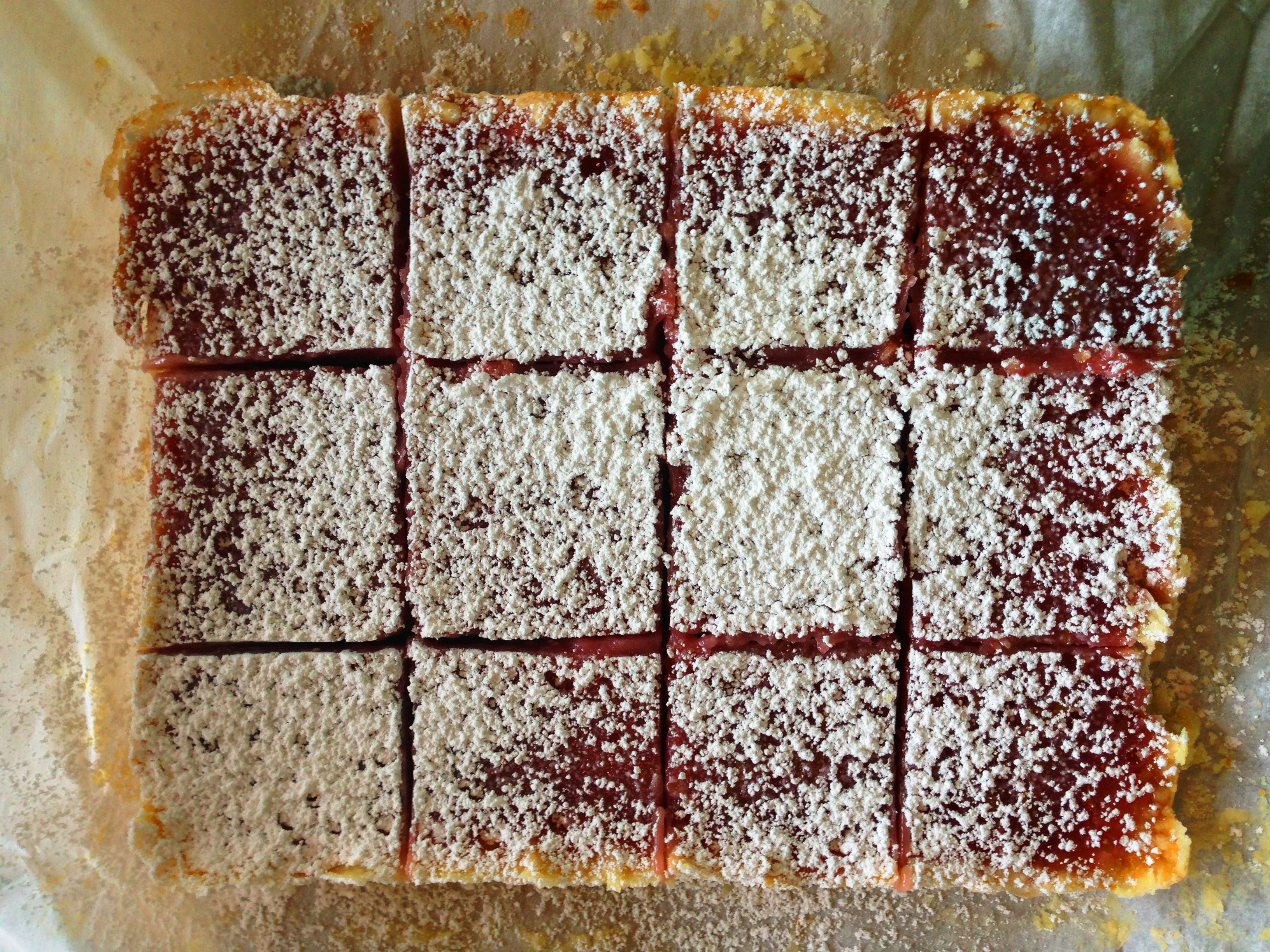 Once cooled cut and dust with powdered sugar.