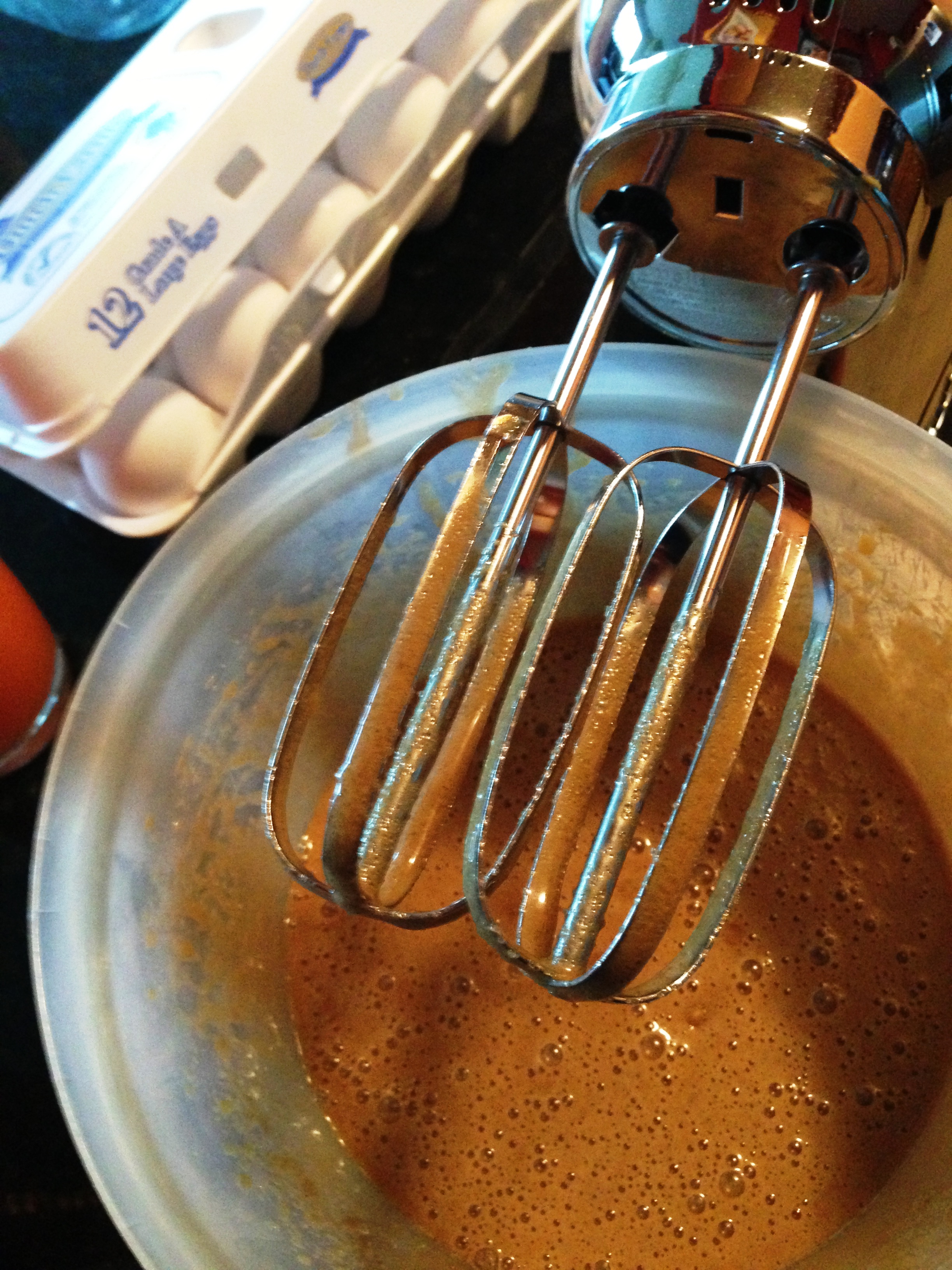 Melt butter, stir in brown sugar. Let cool to room temp.