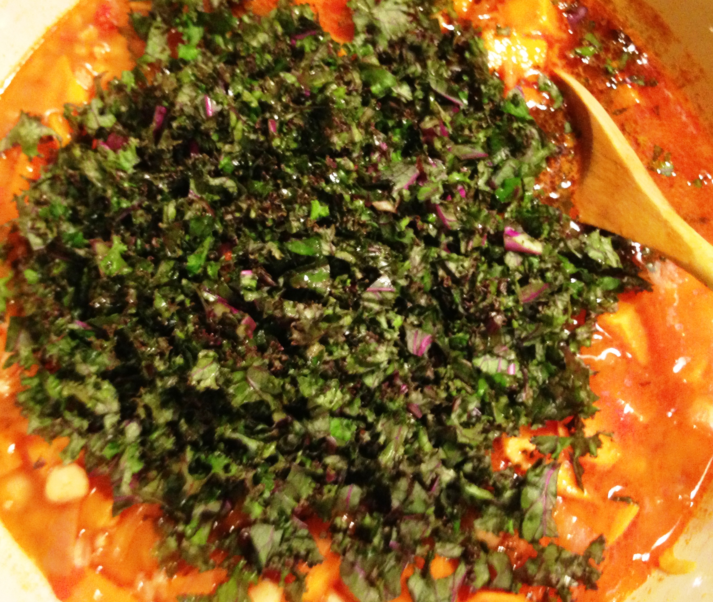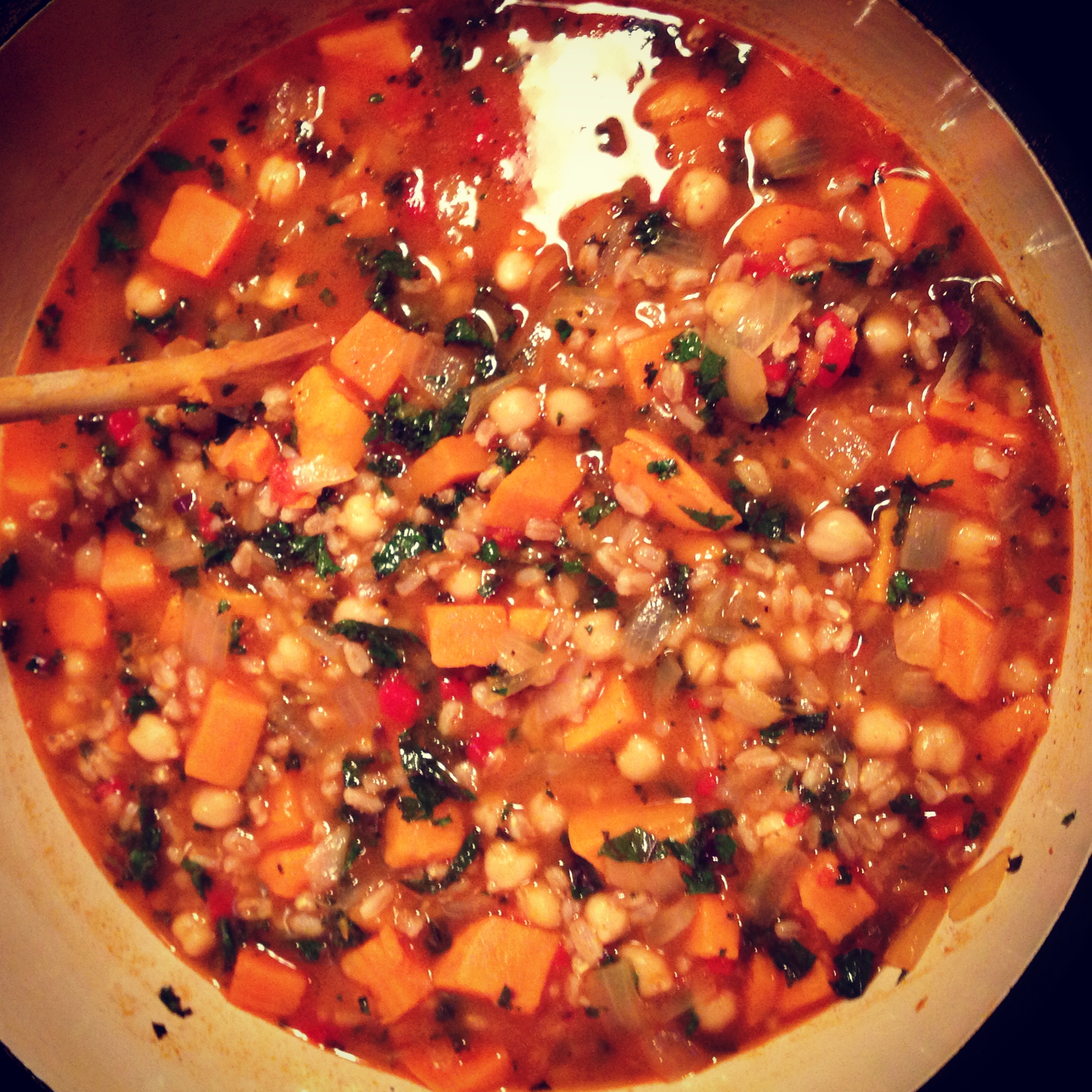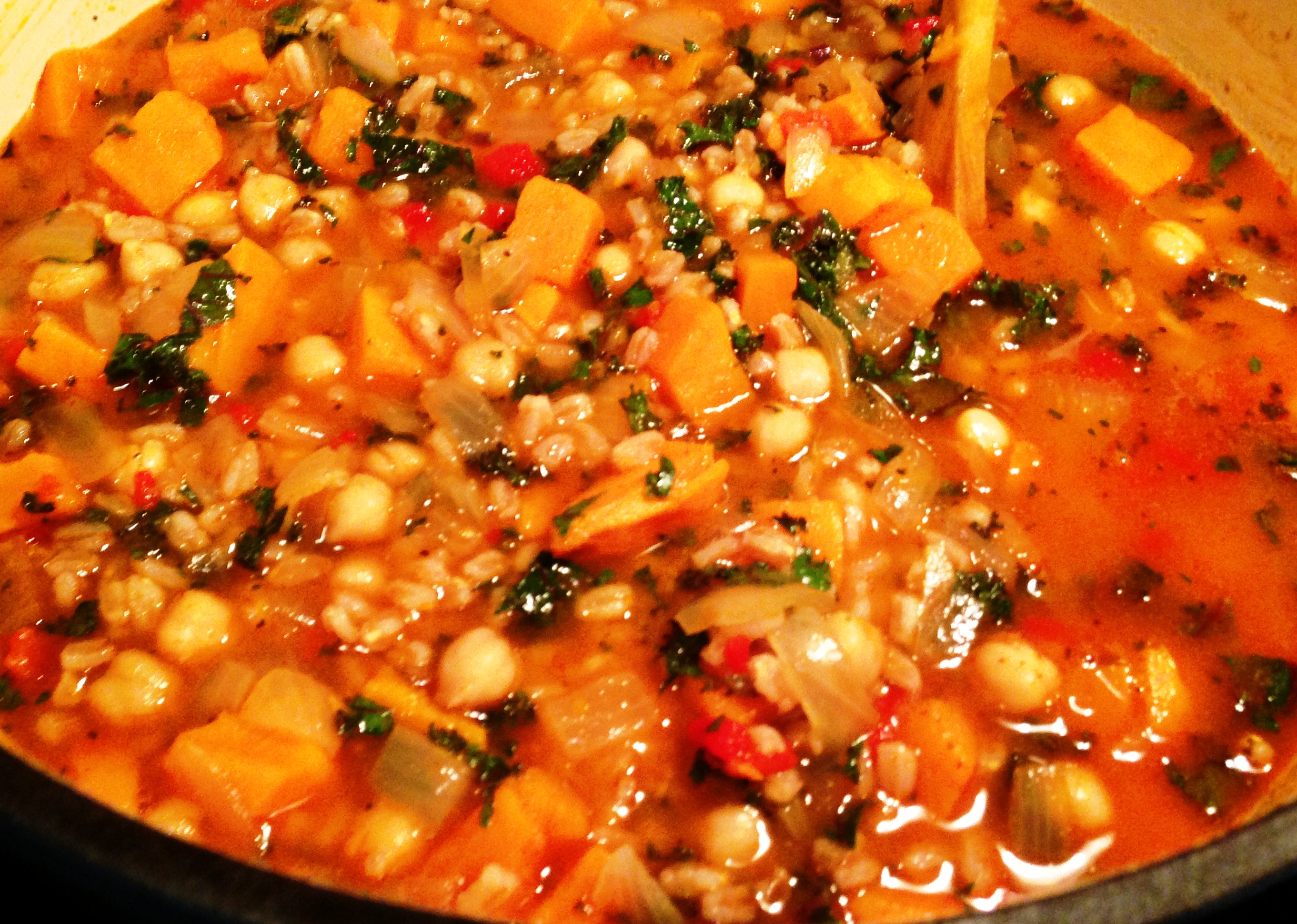 Spicy Sweet Potato, Kale and Chickpea Soup