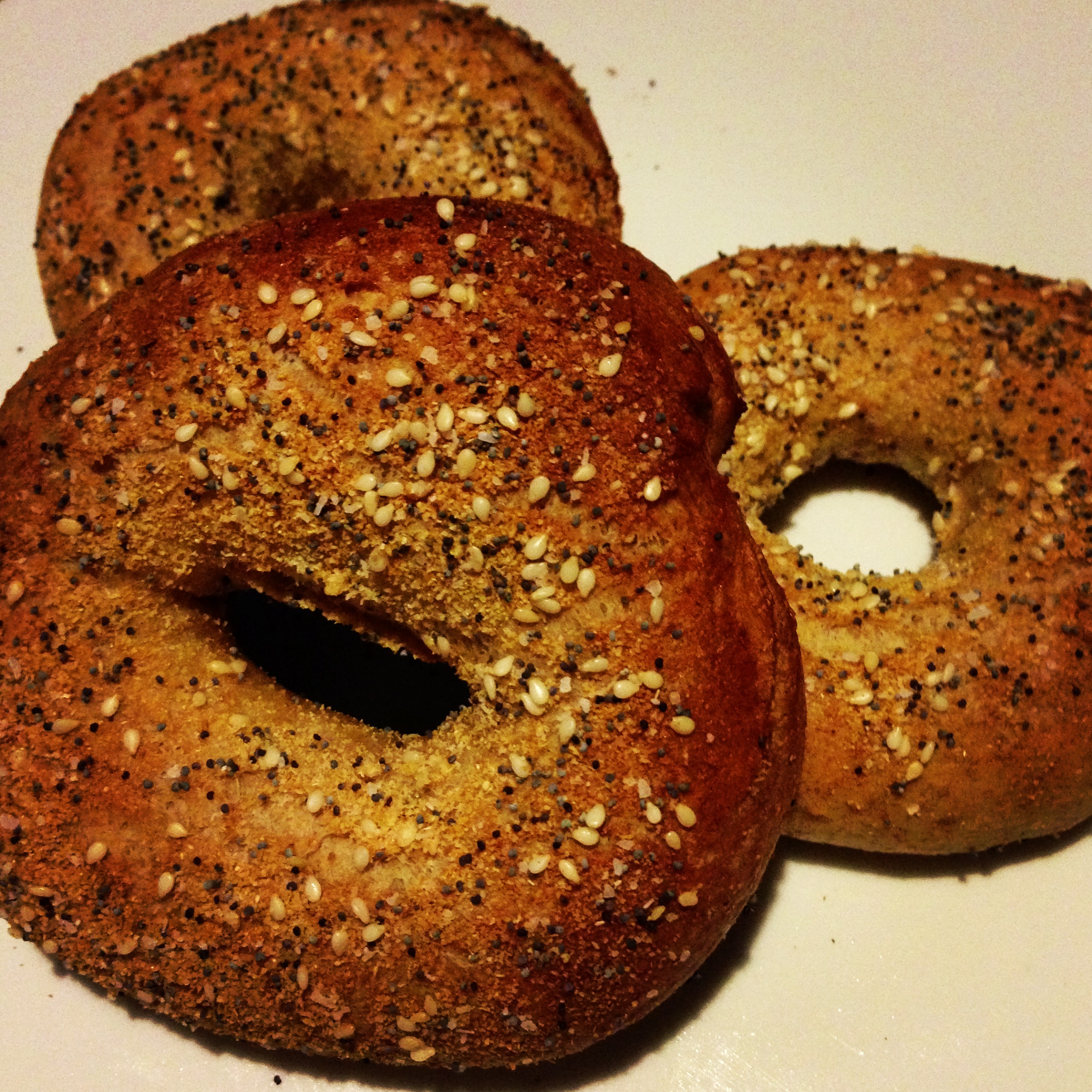 I had just made some homemade whole wheat everything bagels and still had the seasons ready to go so this recipe was a slam dunk.  Also, anything with roasted garlic in it = win.