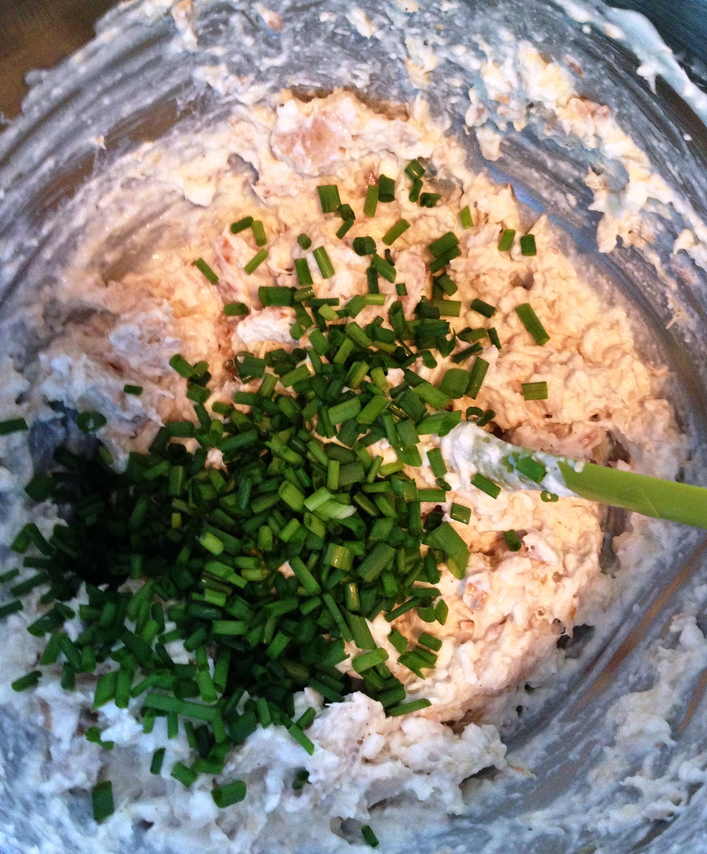 Add the chives. Serve with thin slices of baguette/crackers. If you plan to refrigerate and serve later make sure the pate sits out for 30 minutes at room temperature before serving.
