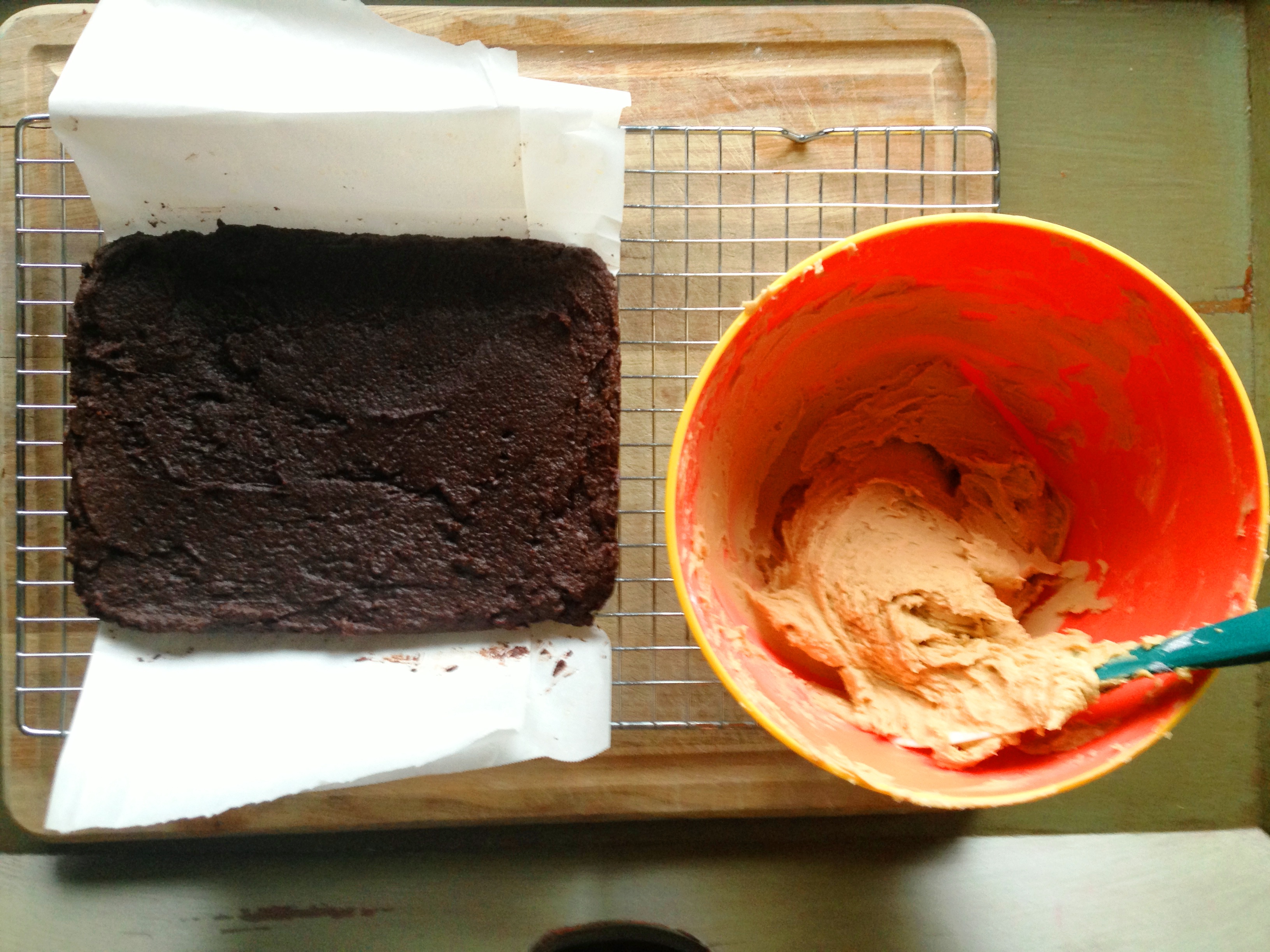 Frosting time: Combine the butter and peanut butter. Sift the powdered sugar into the butter pile and mix well. Spread over cooled brownies and sprinkle with the salt.