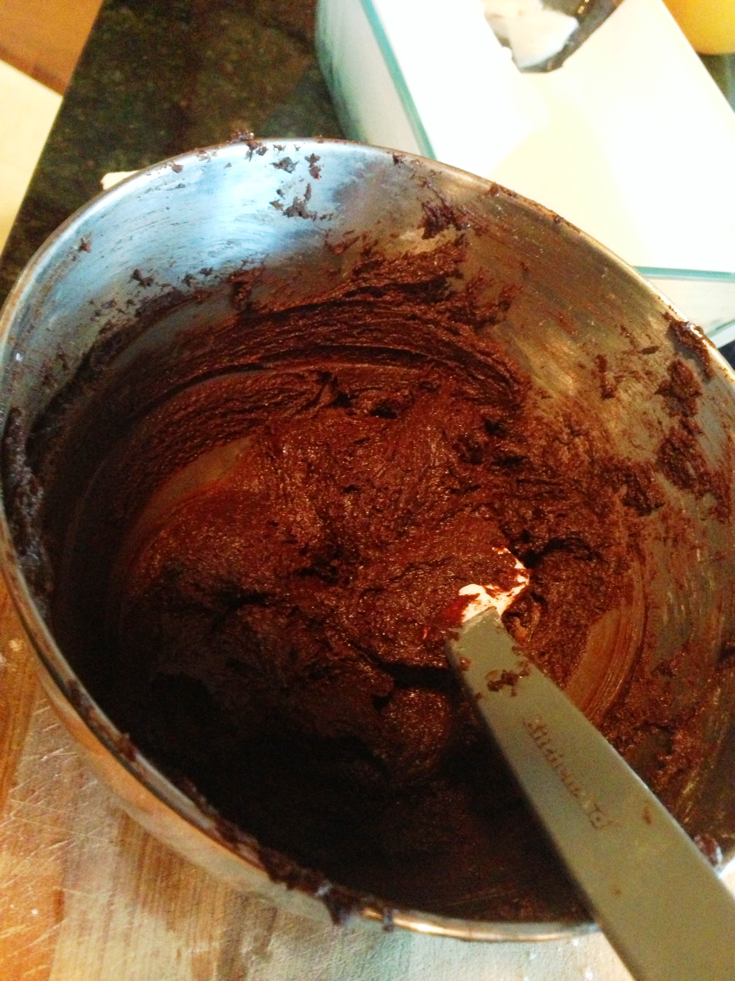 Combine the butter, sugar, cocoa and salt in a heat proof bowl and place over a large pot of simmering water (aka double boiler). Do not let the bottom of the bowl touch the water in the pot.