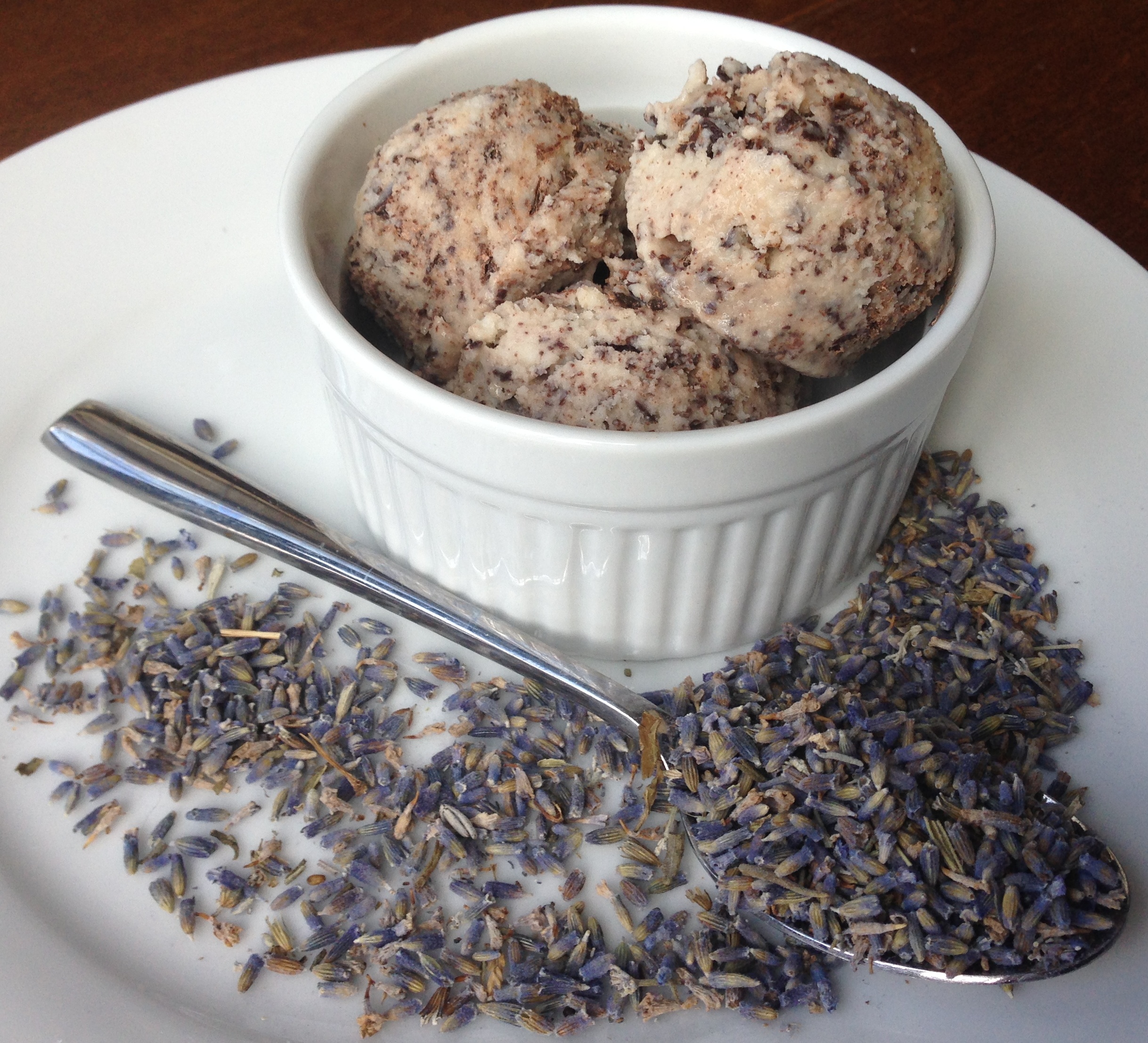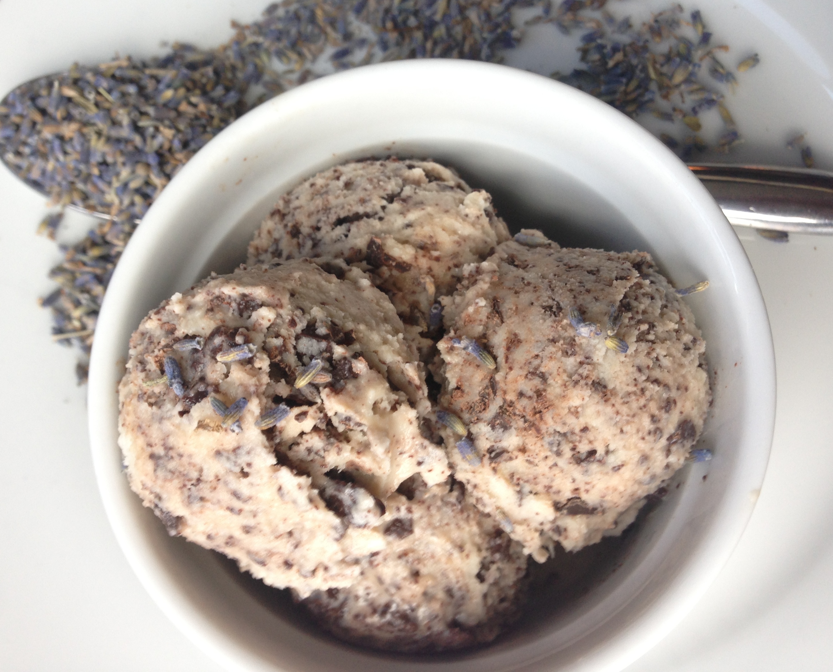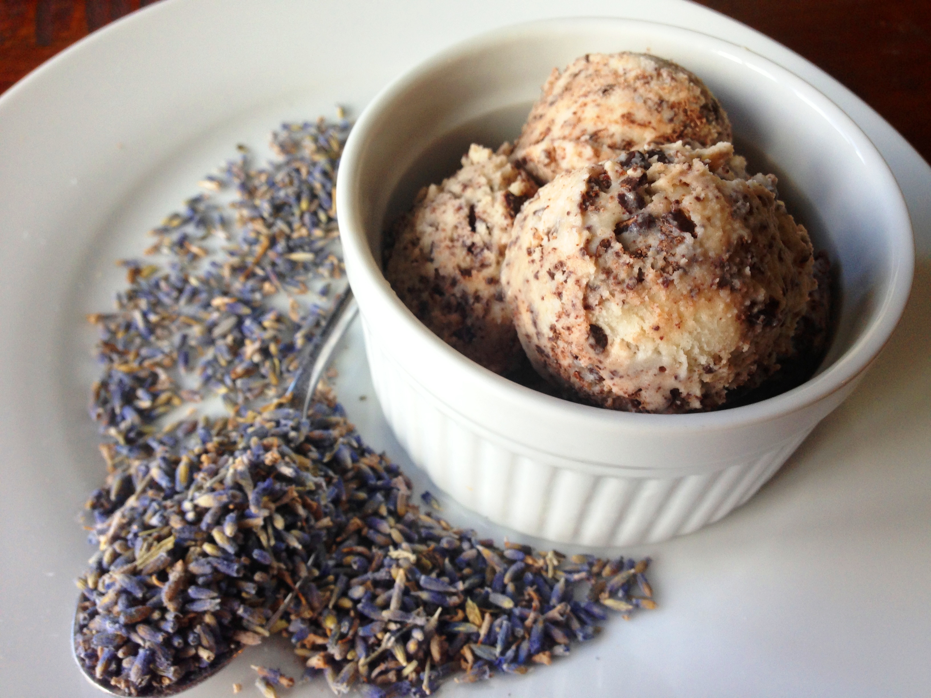When I think of lavender I think of bubble baths and candles… overall calming associations. This recipe is steeped with the lavender and then the lavender is discarded. So I thought I would barely taste it. Wrong- lavender has a kick in culinary format and its presence is definitely felt in the ice cream. In the best way possible.