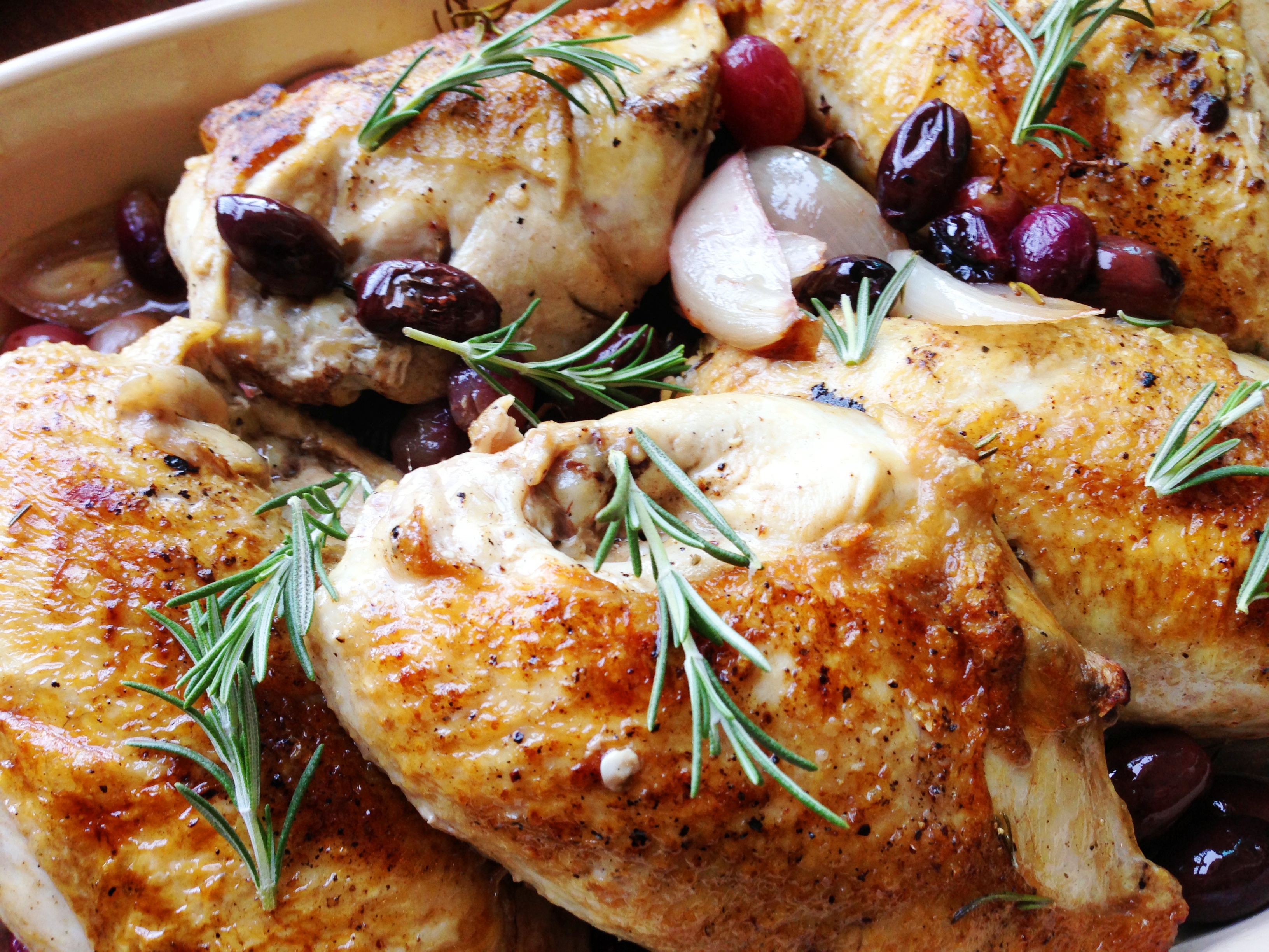 Roasted Chicken with Grapes, Olives, Shallot and Rosemary