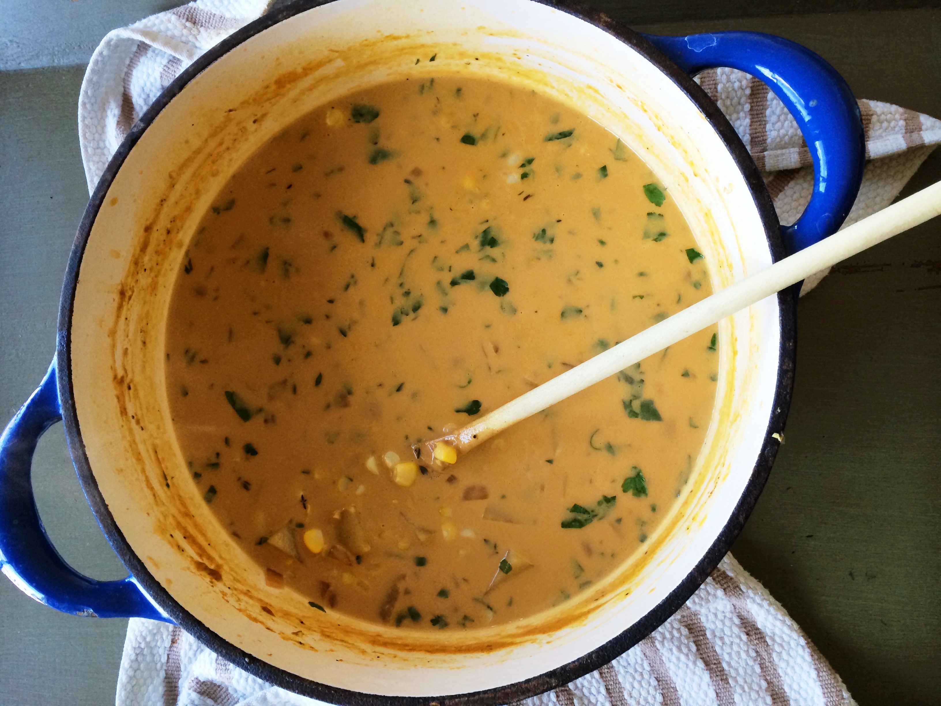 I love this recipe… you get richness from the cream but it’s not as heavy as other corn chowders (less butter, no bacon) so the clean corn flavor still comes through in all the right ways.  And every bite gets a nice scoop of corn… win.