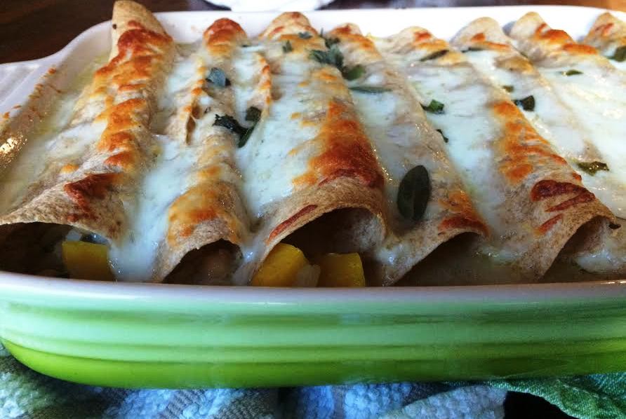 Butternut squash and I are friends all year round. So I’m cheating on summer produce a little bit with this one. I feel this okay because we’re still talking Mexican food which is 50% of my summer intake (although this recipe is in no way remotely authentic). These enchiladas get lightened up with a sauce made of vegetable stock and almond milk plus whole wheat tortillas. It also gets a little protein punch from some chickpeas. There’s still a lot of cheese though… all the cheese.