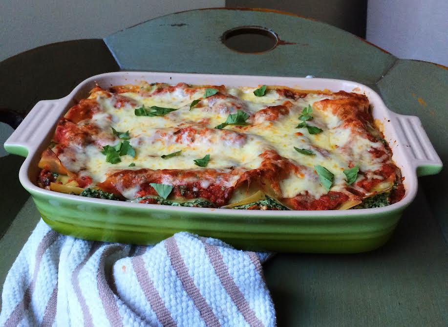 A few notes- just make this work in whatever dish you can. The recipe I followed said to use a 9X9 dish. I used a 9X13 and just added more noodles where I can. I also doubled the amount of spinach the original recipe required to make this dish feel a little healthier. The no-boil noodles are amazing but you might have to break some up to make the layers work. This feels weird because they are uncooked but it all works out after cooking. The layering of sauce, then cheese, etc is not a science so again, just do whatever works to get all these yummy flavors into a dish, covered in cheese and in the oven.