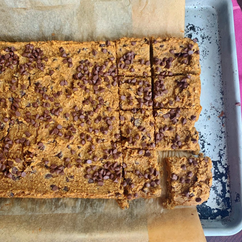 Healthy Pumpkin Chocolate Chip Bars (V + GF)